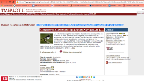 Merlot II. (2015). Conceptos Conexión: Selección Natural 3: La microevolución: Evolución en una población [WEB]. Recuperado en http://ats.doit.wisc.edu/biology/lessons.htm