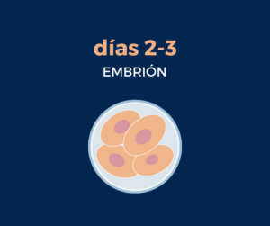 Desde este instante empieza el proceso de separación celular: el cigoto dará sitio a 2 células que, paralelamente, se dividirán y darán sitio a 4 células, un proceso que pasa en el segundo día de desarrollo embrionario. Las divisiones continúan sucesivamente y, ya en el tercer día de desarrollo, el embrión tendrá que disponer de 8 células.