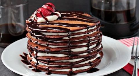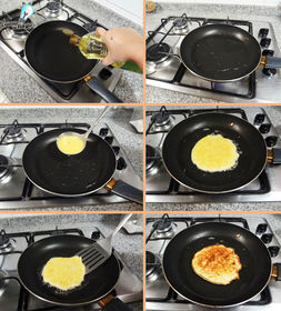 The pan should be hot with a little oil and apply a tablespoon of the Mass, let it cook until it is golden brown and scatter the chocolate