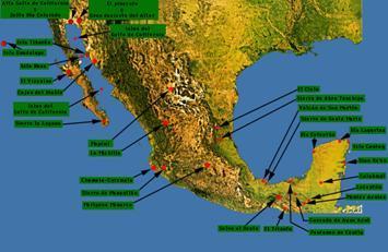 Península de Baja California y Pacífico Norte Noroeste y Alto Golfo de California Norte y Sierra Madre Occidental Norte y Sierra Madre Oriental Occidente y Pacífico Centro Centro y Eje Neovolcánico Planicie Costera y Golfo de México Frontera Sur, Istmo y Pacífico Sur Península de Yucatán y Caribe Mexicano
