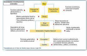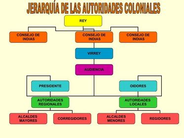 *Real AudienciaTribunal conformado por el presidido, por el virrey, 4 oidores y un fiscal*VirreynatosExtensos territorios 6 años al cargoOrganización por el virreyMiembros de la noblezaMantener autoridadDefender territoriosFe católica*Gobernaciones o capitanías generalesUnidades territoriales pequeñasDependencia política y militarLugares de guerra Capital General*CorregimientosTerritorios que se dividían en en gobernacionesCorregidor - cobraba impuestosObras publicasProtección al indigena