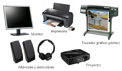 Estos dispositivos y/o componentes que también se comunican mediante una interfaz para poder comunicarse entre ellos y el procesador, estos dispositivos de salida son los que reciben información del procesador y se la muestran al usuario tal como pueden ser monitores, bocinas, audífonos, impresoras o proyectores