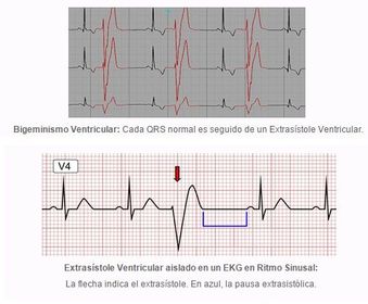 Bigeminismo Ventricular: Cuando cada QRS normal es seguido por un Extrasístole Ventricular.