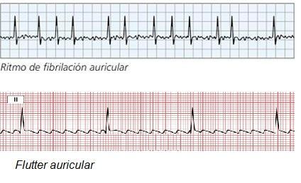El QRS es de apariencia normal.3ª Pregunta ¿Hay onda P?- No existe onda P: Fibrilación Auricular. La distancia entre R y R1 es irregular.- Existe Onda P: Flutter (múltiples ondas P en dientes de sierra). La distancia entre R y R1 es regular