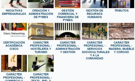 La oferta formativa se materializa en un conjunto de cursos en permanente actualización, organizados en áreas formativas y que han sido diseñados y/o adaptados especialmente para las características de los potenciales destinatarios y de la modalidad de enseñanza.