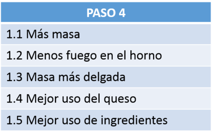 Aquí se toma en consideración la voz de la persona encargada de los procesos de producción.En esta paso se evalúa que tan fácil es de realizar cada uno de los cómo's que se determinaron.Se utiliza una escala de 1 - 5 (1 es muy fácil - 5 muy difícil)