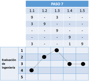 En este paso es en donde vamos a tomar en cuenta nuevamente el resultado mas elevado del punto 6, y se observa que tan fácil es para la empresa de realizar este "Cómo".Si no es posible de realizar se debe seguir mirando el siguiente "cómo" con el puntuación mas alta que le sigue al primero evaluando de igual forma que tan fácil es para la compañía realizarlo.Esto permite a la empresa determinar si puede aumentar su competitividad en el mercado y de que forma lo va a hacer.