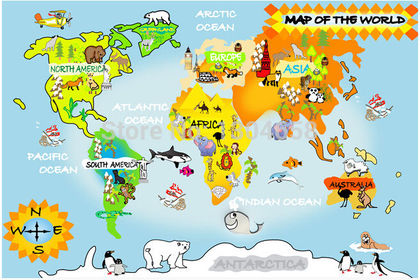 Trata un tema en particular. Por ejemplo: mapa de población, de climas, de economía, etc.