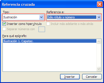 EN ESTE CASO INSERTAREMOS LA REFERENCIA IGUAL QUE CON EL MARCADOR PERO EN ESTA OCASIÓN SERA CON ILUSTRACIONES , SELECCIONAMOS EL TITULO DE LA ILUSTRACIÓN QUE NECESITAMOS Y NOS LLEVARA DIRECTAMENTE A LA UBICACIÓN DE LA MISMA.