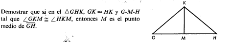 1) GK= HK .....................................................DATO CONOCIDO 2) ANG (GKM) ≅ ANG (HKM) ........................................ DATO CONOCIDO 3) KM = KM ....................................................... REFLEXIVA 4) GKM ≅HKM .................................................. POST LAL 5) GM= HM .............................................................PCTCC6) G-M-H ...............................................................DATO CONOCIDO 7) M ES EL PUNTO MEDIO DE GH .................. POR 5 Y 6 ANG= ANGULO NOTA: LA APLICACION NO MUESTRA EL SIMBOLO DE ANGULO