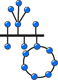 TOPOLOGIA ESTRELLA - BUS: Podemos ver una red en bus al que están conectados los hubs de pequeñas redes en estrella.TOPOLOGÍA ESTRELLA - ANILLO: encontramos que el cableado forma físicamente una estrella, pero el hub al que se conecta hace que la red funcione como un anillo.