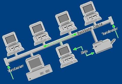 permite que todas las estaciones reciban la información que se transmite, una estación transmite y todas las restantes escuchan. Consiste en un cable con un terminador en cada extremo del que se cuelgan todos los elementos de una red. Todos los nodos de la red están unidos a este cable: el cual recibe el nombre de “Backbone Cable”.