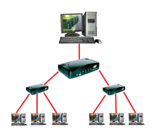 ocupado por un hub o switch, desde el que se ramifican los demás nodos. Es una