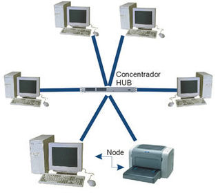 En una red estrella típica, la señal pasa de la tarjeta de red (NIC) de la computadora que esta enviando el mensaje al Hub y este se encarga de enviar el mensaje a todos los puertos. La topología estrella es similar a la Bus, todas las computadoras reciben el mensaje pero solo la computadora con la dirección, igual a la dirección del mensaje puede leerlo.