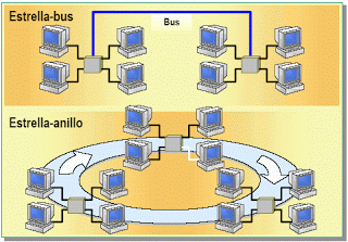En una topología mixta, se combinan dos o más topologías para formar un diseño de red completo. Raras veces, se diseñan las redes utilizando un solo tipo de topología. Por ejemplo, es posible que desee combinar una topología en estrella con una topología de bus para beneficiarse de las ventajas de ambas.