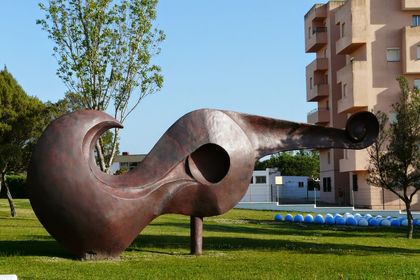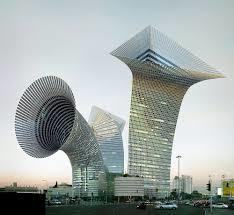 Caption: : En aquesta imatge podem observar un edifici en forma de trompeta.