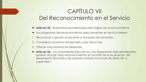 Art. 45. El personal docente, Directivo y de Supervisión en funciones en el cumplimiento de su responsabilidad será objeto de reconocimiento, en lo individual o colectivo.