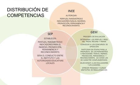 También se establece la distribución de competencias para las autoridades educativas y el Instituto Nacional para la Evaluación de la Educación (INEE) .