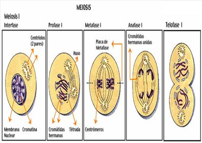 La meiosis es un proceso que consiste en dos divisiones celulares sucesivas luego de una sola replicación del material genético. En la primera división ocurren procesos que generan variabilidad genética a través de recombinación y asociación independiente de los cromosomas homólogos; el resultado de este proceso son cuatro células haploides, cada una con una combinación de genes distintos. Se divide en meiosis I y II,Cromosomas homólogos: son cromosomas que, formando un par, realizan un entrecruzamiento cromosómico entre sí durante la meiosis.Células Haploides: Una célula haploide es aquella que contiene un solo juego de cromosomas o la mitad del número normal de cromosomas en células diploides