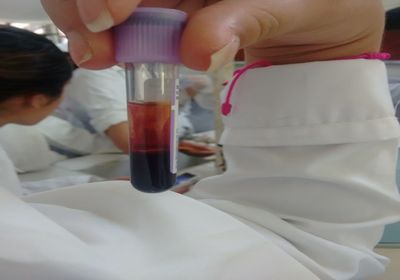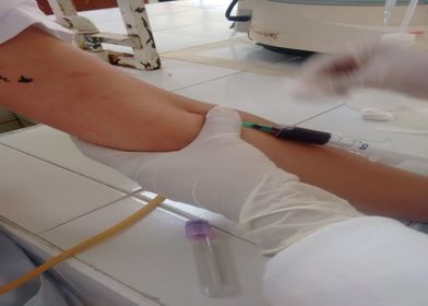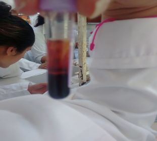 En primer lugar se procedió a tomar una muestra de sangre de un humano y de un anfibio (sapo)Para la muestra de humano se requirió una jeringa y un tubo de ensayo con EDTA (anti-coagulante).