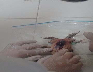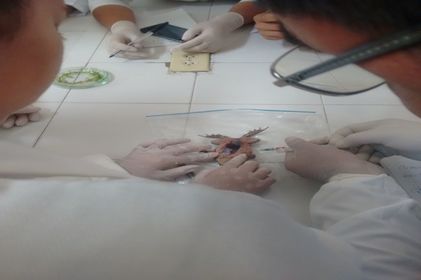 Para la muestra del sapo en primer lugar se puso en una bolsa con cloroformo para dormirlo y se procedió a diseccionar, se tomo la sangre del corazón y al igual que la anterior muestra se deposito en un tubo de ensayo con EDTA