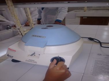 Transcurridos los 15m se sacan las muestras y se observa que el plasma, los glóbulos rojos y los blancos se encuentran separados se montan sobe una lamina para observarlas en el microscopio.Para esto con ayuda de una lanceta se toma una pequeña cantidad de la muestra de la parte donde están los leufocitos (se diferencia por el color)