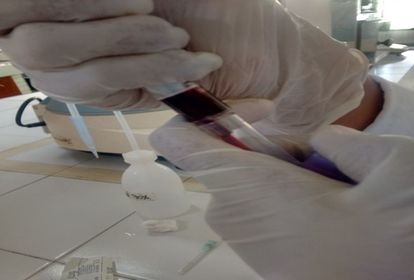 Se pone una gota de cada muestra tomada con la lanceta en una lamina, se deja secar por un momento, posteriormente se debe pasar por calor (encendedor) para fijar la muestra se aplica colorante de wright para poder ver los glóbulos blancos ya que estos son incoloros y finalmente se lava suavemente para retirar los excesosSe lleva al microscopio y se procede con las observaciones.