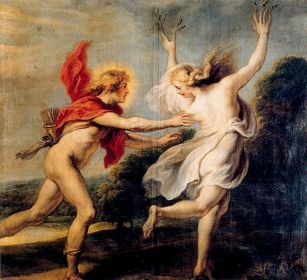 Apolo persigió sin descanso a Dafne mientras ella corría para alejarse de él. Los dioses vieron la escena y ayudaron a Apolo para que la alcanzara. En vista de que Apolo la tocara, Dafne invocó a su padre del río.