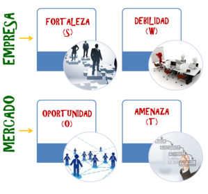 El término FODA traducido al inglés es SWOT, lo cual sus siglas significan strengths (fortalezas), weaknesses (debilidades), opportunities (oportunidades) y threats (amenazas).FORTALEZAS: Son las capacidades especiales con que cuenta la empresa, y por los que cuenta con una posición privilegiada frente a la competencia. Recursos que se controlan, capacidades y habilidades que se poseen, actividades que se desarrollan positivamente, etc.OPORTUNIDADES: Son aquellos factores que resultan positivos, favorables, explotables, que se deben descubrir en el entorno en el que actúa la empresa, y que permiten obtener ventajas competitivas.DEBILIDADES: Son aquellos factores que provocan una posición desfavorable frente a la competencia. recursos de los que se carece, habilidades que no se poseen, actividades que no se desarrollan positivamente, etc.AMENAZAS: Son aquellas situaciones que provienen del entorno y que pueden llegar a atentar incluso contra la permanencia de la organización.