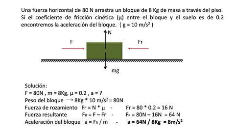 Se entiende como fuerza: a la acción de empujar o arrastrar un cuerpo. Es una cantidad vectorial cuya magnitud es producto de la masa de la aceleración. sus unidades son Newton (N), y dinas (D).Las fuerzas: