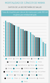 una tasa de 9.5 mujeres fallecidas por cáncer de mama por cada 100 mil