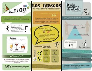 EN EL ANTERIOR PLEGABLE SE MUESTRAN COMO AFECTA EL ALCOHOL AL SNC, SUS EFECTOS, LAS MEDIDAS QUE DEBEMOS TOMAR EN UN USO MODERADO, TAMBIÉN LOS RIESGOS QUE CONLLEVAN EN UN FUTURO.ADEMÁS DE UNA ESCALA SOBRE EL CONSUMO DE ALCOHOL DE JÓVENES COLOMBIANOS Y COMO ESTOS CONSUMOS HAN AUMENTADO CON EL PASO DEL TIEMPO DE ESTA DROGA LEGAL QUE PUEDE SER MÁS PERJUDICIAL QUE UNA ILEGAL.