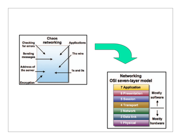 -Los procesos de comunicación son divididos en 7 capas (layers).-Cada capa:“confía” en las capas de abajo/Ofrece servicios para las capa superior.-Crea independencia.- Reduce la complejidad.- facilita diseño.-Asegura tecnología interoperable.