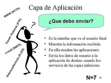 Mas cercana al usuario: suministra servicios de red a las aplicaciones del usuario.Ejemplo: Navegadores web, clientes de mensajería.