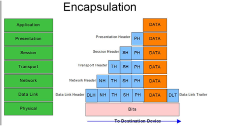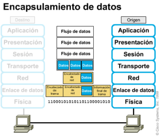 Unidades de información intercambiadas por las distintas capas: Mensajes de nivel aplicación, segmentos de la capa transporte, datagramas en la capa red y frames en la capa de enlace de datos. Cada capa agrega su propio encabezado.