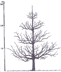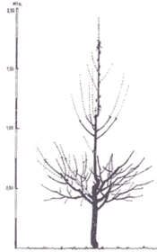 pirámide se forma con un tallo principal y 12 a 15 ramas primarias, en árboles