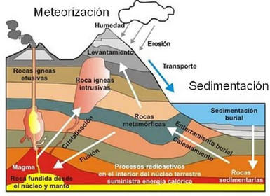 Las rocas sedimentarias se forman como resultado de la acción de los agentes atmosféricos sobre rocas preexistentes. Es decir, la meteorización ocasionada por los agentes físicos, químicos y biológicos a los cuales la roca queda expuesta la debilitan, provocando su fragmentación y los productos o sedimentos generados a partir de la roca son transportados hacia otros sitios, por el viento y los ríos, entre otros, donde se depositan gradualmente en capas.