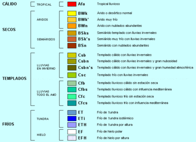 Tropical: Caliente subhúmedo con lluvias en verano (sabana). Se da entre la zona ecuatorial y en los desiertos cálidos (entre 10 y 25º de latitud Norte y Sur). Estación invernal seca que aumenta a medida que nos alejamos del Ecuador. Precipitación mínima superior a 100 mm.Monzónico: Caliente, húmedo, con lluvias abundantes en verano, con influencia del monzón. Se da en el sudeste asiático. Es el clima más húmedo del planeta, aunque tiene una corta estación seca invernal. Contraste estacional muy fuerte. Verano cálido y húmedo e invierno seco.