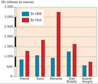 El agudizamiento de las tensiones internacionales derivadas de las rivalidades económicas y coloniales así como del el auge del nacionalismo intransigente condujeron a una escalada en la producción de armamentos.Fabrica de cañones alemanesLos estados incrementaron sus gastos militares e incorporaron a sus ingenios las novedades tecnológicas de la Segunda Revolución Industrial.Europa se deslizaba por la senda de la guerra. Este período de tensiones internacionales ha recibido el nombre de "Paz Armada": "paz", porque todavía no ha estallado el conflicto, "armada" porque se prepara para él.