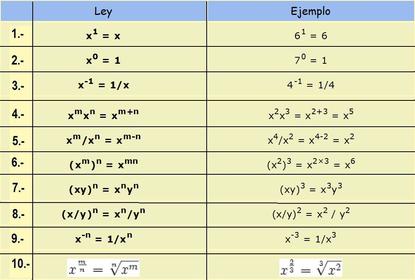 leyes de exponente