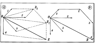 Método gráficoCuando tenemos más de dos fuerzas concurrentes, se puede utilizar el método del polígono de fuerzas.Sean 1,2,3 y 4 las fuerzas del sistema. Tomando a la 1 como referencia, dibujamos la 2 a continuación de ella, transportándola de forma paralela a la original. Repetimos el proceso: transportamos la 3 y la colocamos donde finaliza la 2, y así sucesivamente.La resultante será la fuerza que va desde el origen del sistema hasta la punta de la última fuerza transportada.Observar que es una extensión del método del paralelogramo