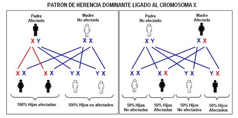 Si el papá está enfermo solo las hijas mujeres estarán enfermas.