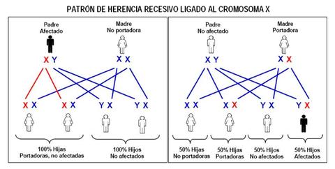 Si la mujer heredan un X mutado solo son portadoras, pero no desarrollan la enfermedad.