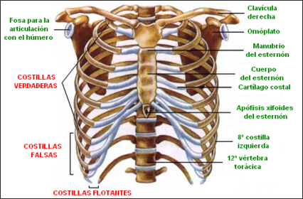 Las diferentes partes del esternón (manubrio, cuerpo y
