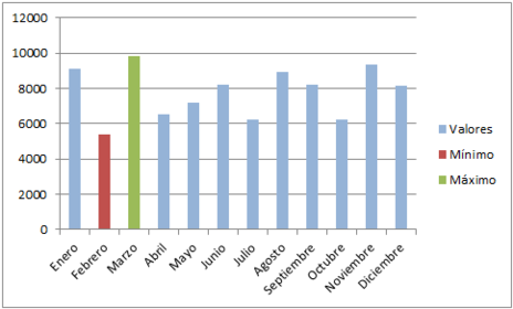 Gráficos de barras:En un gráfico de barras se pueden trazar datos que se organizan en columnas o filas de una hoja de cálculo. Los gráficos de barras muestran comparaciones entre elementos individuales.