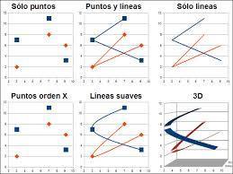 Gráficos de tipo XY (dispersión):Un gráfico de dispersión tiene dos ejes de valores y muestra un conjunto de datos numéricos en el eje horizontal (eje X) y otro en el eje vertical (eje Y). Combina estos valores en puntos de datos únicos y los muestra en intervalos irregulares o agrupaciones.