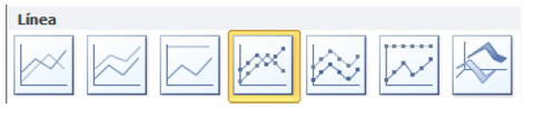 Caption: : Aquí se muestra una imagen que contiene algunos tipos de gráficos lineales con los que Excel cuenta.