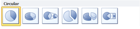 Caption: : Se muestran algunos tipos de gráficos circulares con los que cuenta Excel.