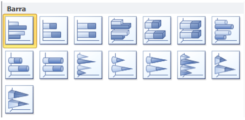 Caption: : Ejemplos de algunos tipos de gráficos de barras con los que cuenta Exccel.