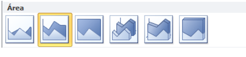 Caption: : Ejemplos de algunos gráficos de área con los que cuenta Excel.